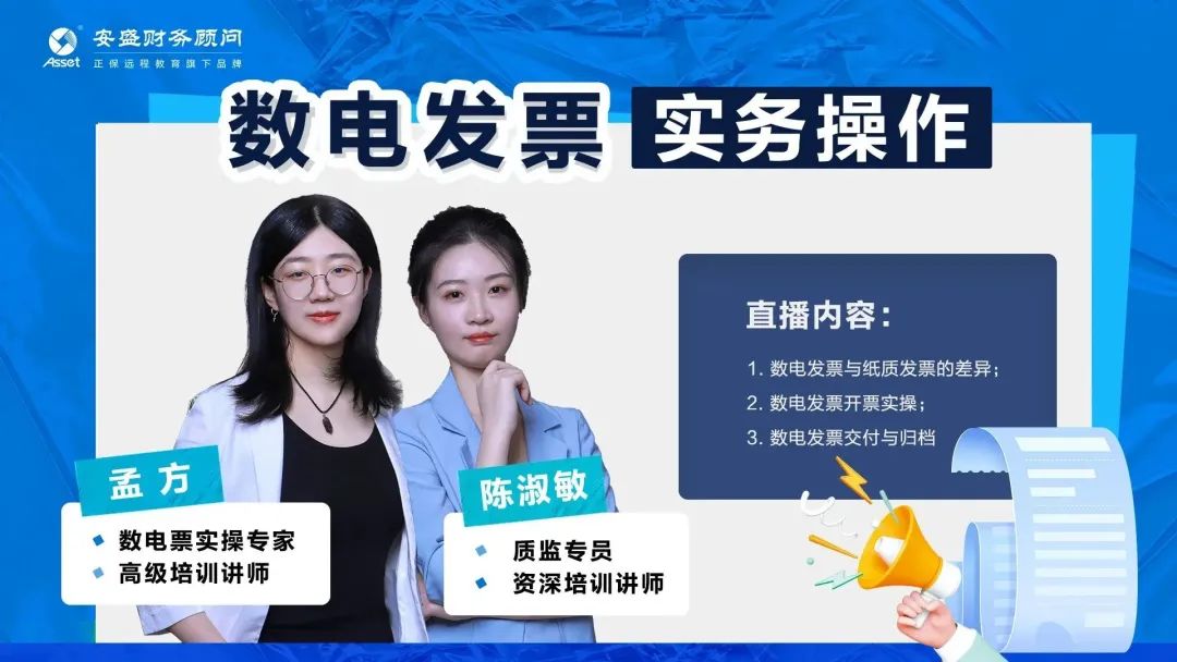 為進(jìn)一步普及“數(shù)電票”實(shí)操工作,幫助企業(yè)了解并掌握數(shù)電票業(yè)務(wù)操作,7月25日19時,正保安盛財(cái)務(wù)組織開展《數(shù)電票實(shí)務(wù)操作》線上直播培訓(xùn)課,活動邀請產(chǎn)學(xué)研中心陳淑敏老師和項(xiàng)目服務(wù)中心孟方老師給大家精彩講解。