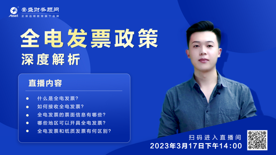 為了幫助大家更好更全面地了解“全電發(fā)票”,3月17日14時(shí),安盛財(cái)務(wù)組織開(kāi)展“安盛財(cái)稅云課堂”第五期——線上直播培訓(xùn)課《全電發(fā)票政策深度解析》,活動(dòng)邀請(qǐng)產(chǎn)學(xué)研中心李碩老師給大家精彩講解。